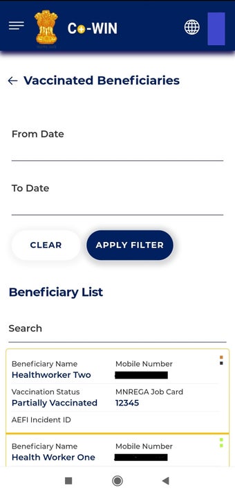 De officiële CoWIN-vaccinatie-app is bedoeld voor vaccinators om hen te helpen de uitrol van het vaccin in heel India te coördineren. De app houdt de registratie bij van begunstigden van het vaccin om ervoor te zorgen dat ze het vaccin in de juiste volgorde van prioriteit ontvangen.